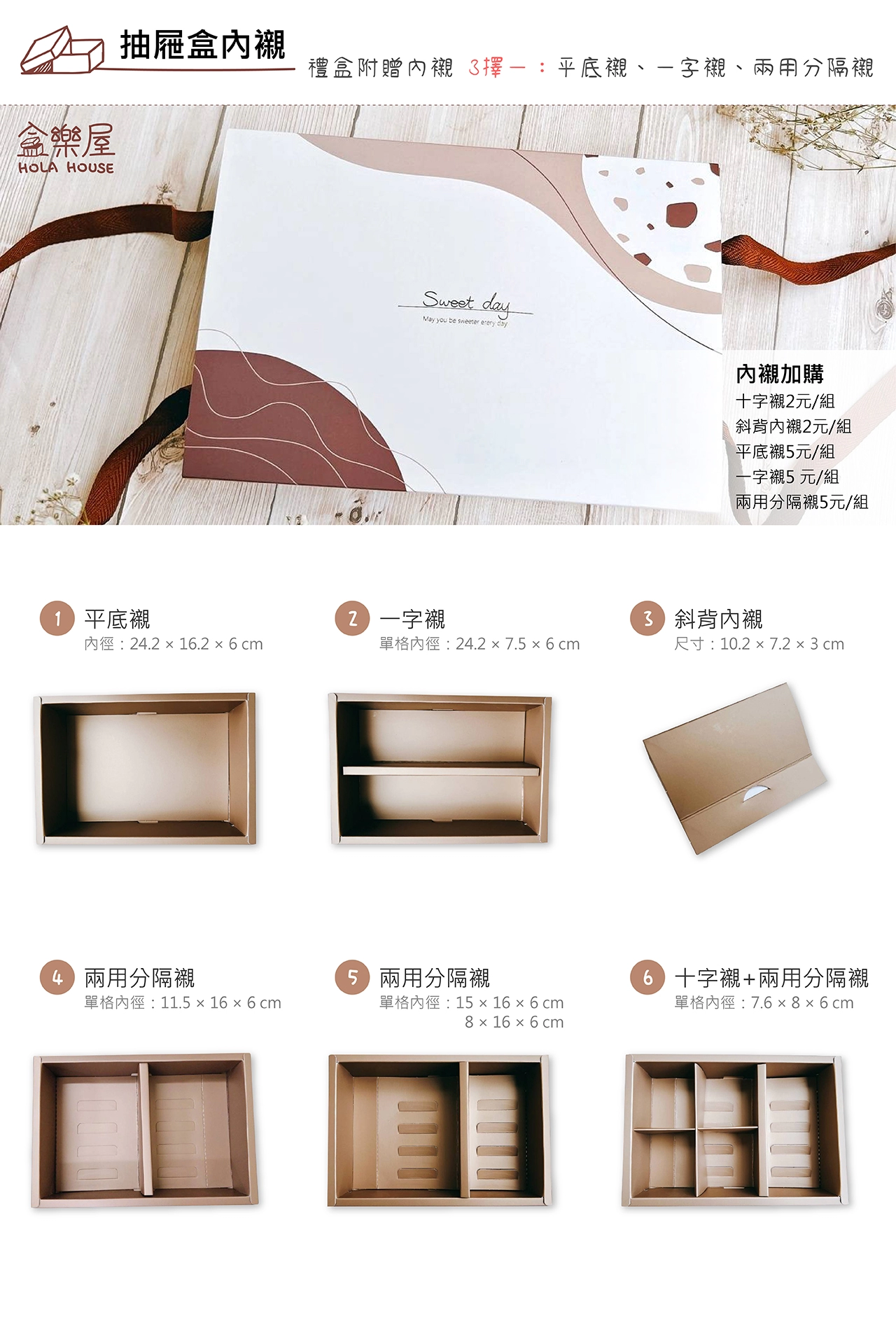 禮盒及封套、提繩、內襯(一字襯、平底襯、兩用分隔襯 任選一)